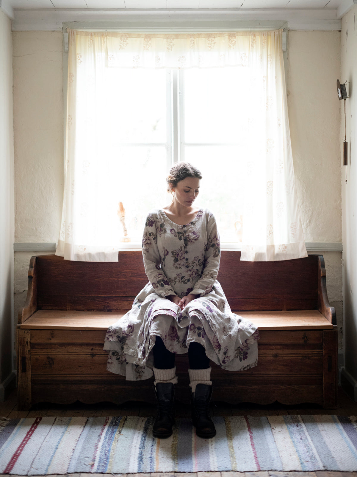 Linnerock i klassisk rak, fodrad modell, med fickor